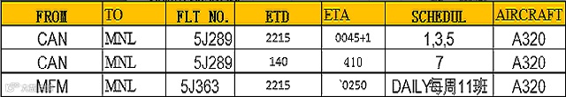 一、广州5J逢1/3/5/7窄体机型执飞