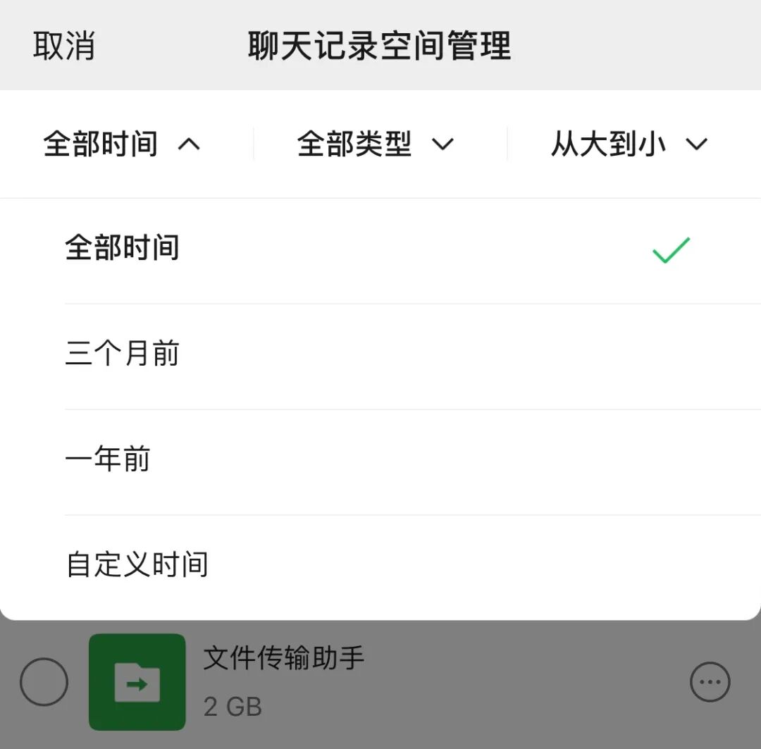 另外,在聊天记录空间管理中,清理聊天记录时可以选择「自定义时间」。