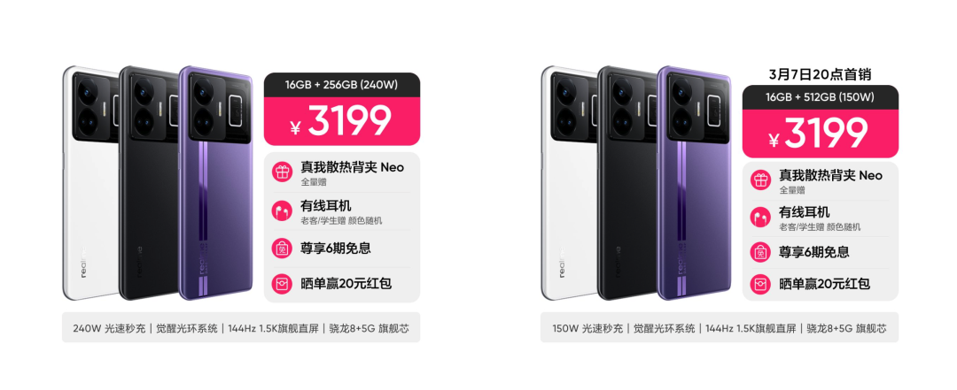 【新机】GTNeo5新增16+512GB:3199元你选150W还是240W?