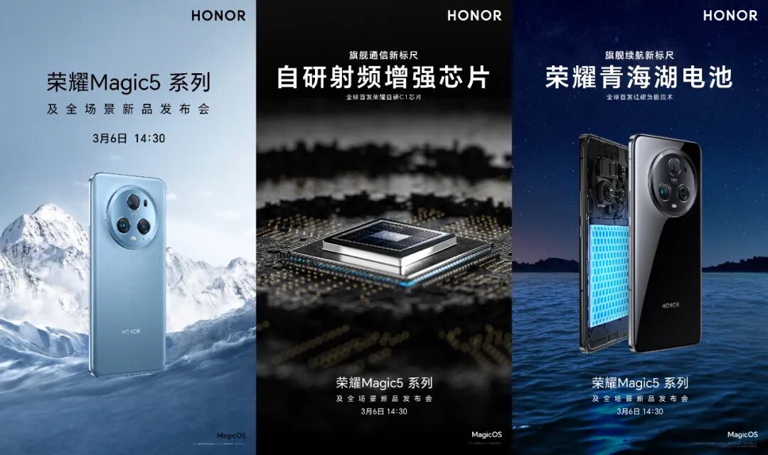 据荣耀预热“荣耀Magic5系列带来自研射频增强芯片,荣耀Magic5 Pro全球首发荣耀自研C1芯片,信号见底也能通信”;另外青海湖电池指的是首发硅碳负极电池技术,相同体积下实现更大电池容量,应用该技术的Magic5 Pro配备5450mAh电池;另据了解Magic5系列还有独立安全存储芯片S1和独显芯片X5 Pro。
