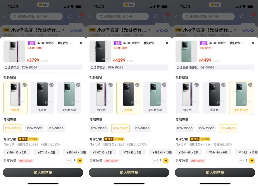 iQOO 11具体12+256GB版优惠600(4399→3799);16+256GB版优惠600(4699→4099);16+512GB版优惠500(4999→4499)。不过不少店库存有限。大家觉得这波活动如何?有在外卖平台买过手机or其他电子产品的小伙伴也欢迎评论区留言分享~