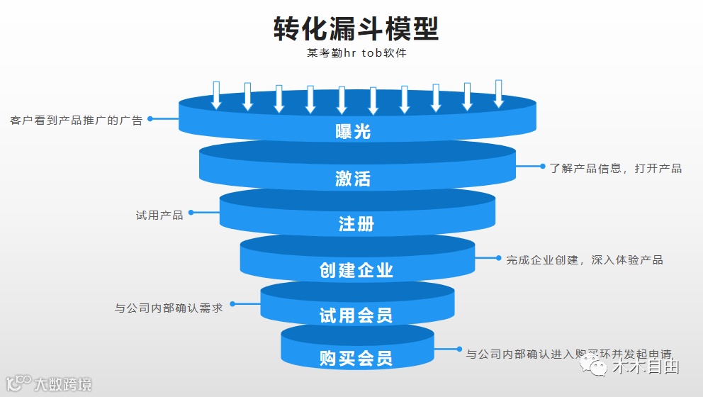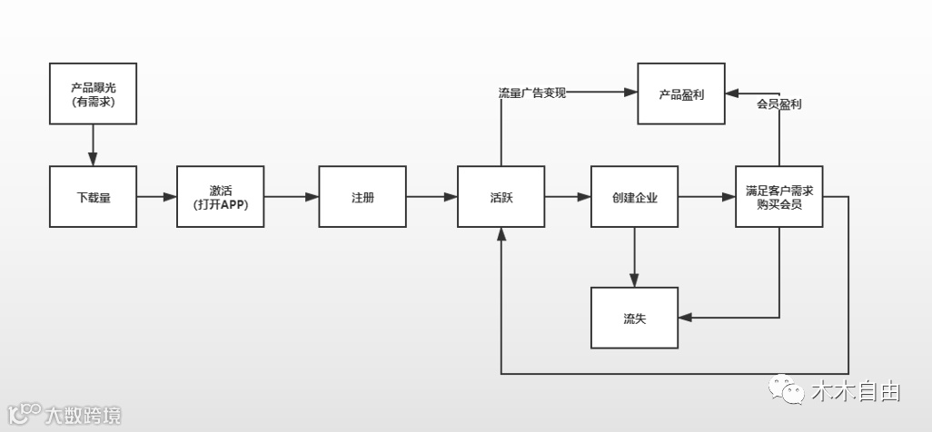 了解行业内相应业务流程和规则,才可以使数据分析的结论和建议更加落地。还以To b 一个考勤hr产品为例。该产品的业务模式很简单,无非是以引导客户购买会员变现为主,以广告变现为辅,从而实现从投入到盈利的商业闭环,这个模式得有渠道(市场推广)有内容(打造品牌),有产品(满足客户需求),有运营(提升日活和客户转化),有客户(购买会员)等。
