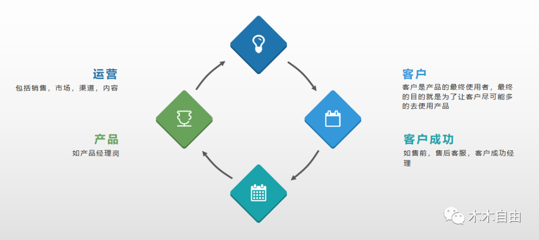客户成功:有了用户购买了产品,那么我们要去维护用户,留存,转化。