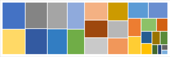 树形图擅长表达非常多的类目,通过不同色块来进行表示不同类目,不同区块大小表示不同的数值,树形图将柱状图不擅长的问题成功弥补了。