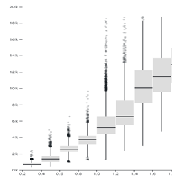 箱线图可以准确的将数据四分位数、中位数、最大(小)值表示出来。离散的数据都可以用它来描述。