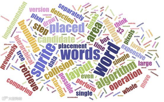 根据词汇出现的频率用不同的字体大小,不同的颜色来进行比较。更适合用于突出主题