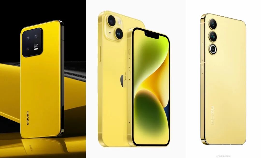 小米13飓风黄、iPhone14黄色、魅族20悦动黄3个放在一起,问问大家,