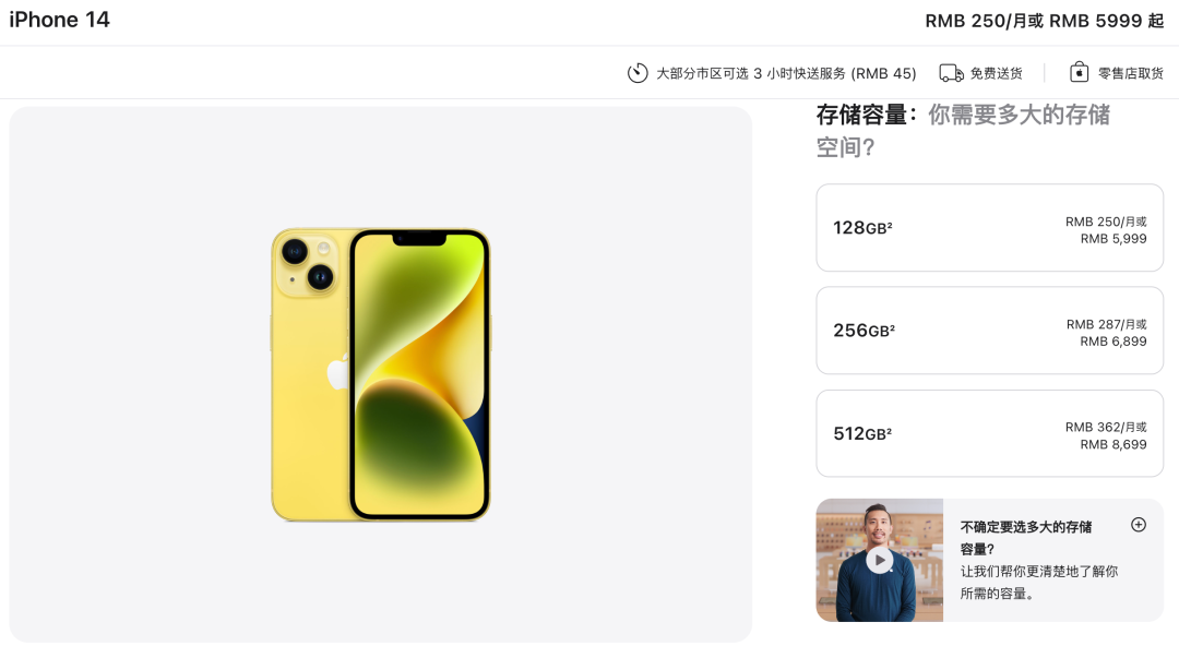 据了解,iPhone 14、iPhone 14 Plus黄色售价5999元起,将于 3 月 10 日晚 9 点预购,3 月 14 日正式开售。