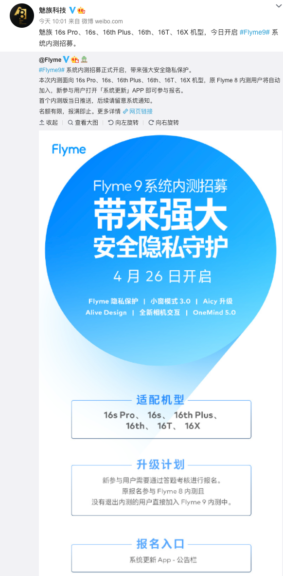 昨天小白测评手机灵魂系列视频进行了更新,主要对象是魅族的Flyme 9,而昨天评论区热评基本上好多都是催更魅族16系列,不知道是不是心有灵犀,昨天刚发视频,今天魅族Flyme 9面向16系列用户开启了内测。