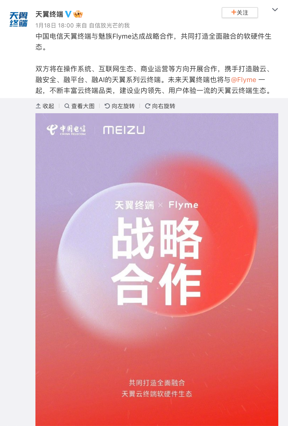 中国电信天翼终端和魅族Flyme的合作看起来更多是云终端生态的合作。但参照之前realme和天翼终端的合作,或许未来魅族还有可能推出运营商联名定制款机型,提供多样化定制虚拟应用和服务?🤔 就最近消息来说,魅族铺设线下的决心和势头很猛,希望可以快速落实,手机业务也重回主流市场吧~