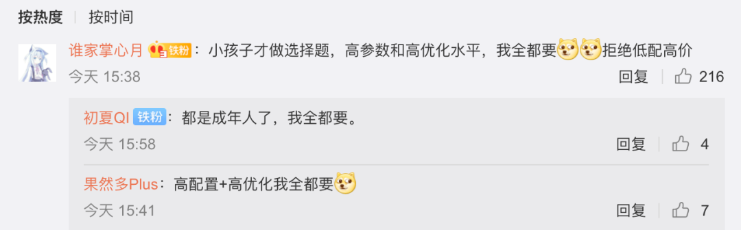 随后卢伟冰再度发文表示:「鼓吹参数不重要的,都是在为“低配高价”找理由!如果选择更高的参数,在“高优化水平”下,一定会有更好的用户体验……」