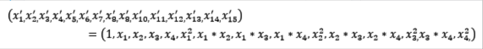 常见的多项式组合有基于多项式的、基于指数函数的、基于对数函数的。4 个特征,度为 2 的多项式转换公式如下: