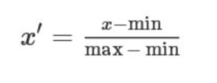 1)归一化处理:最大最小值归一化或者叫 0-1 归一化,取值范围在 [0,1] 处理,max 为样本最大值, min 为样本最小值。