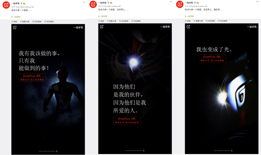 如上图所见,一加官方预热了一组一加9R和迪迦奥特曼有关的海报,具体活动将于明早公布。外界猜测或许一加9R将推出迪迦奥特曼联名版,或者会出一个和迪迦有关的配色,大家觉得会是什么?
