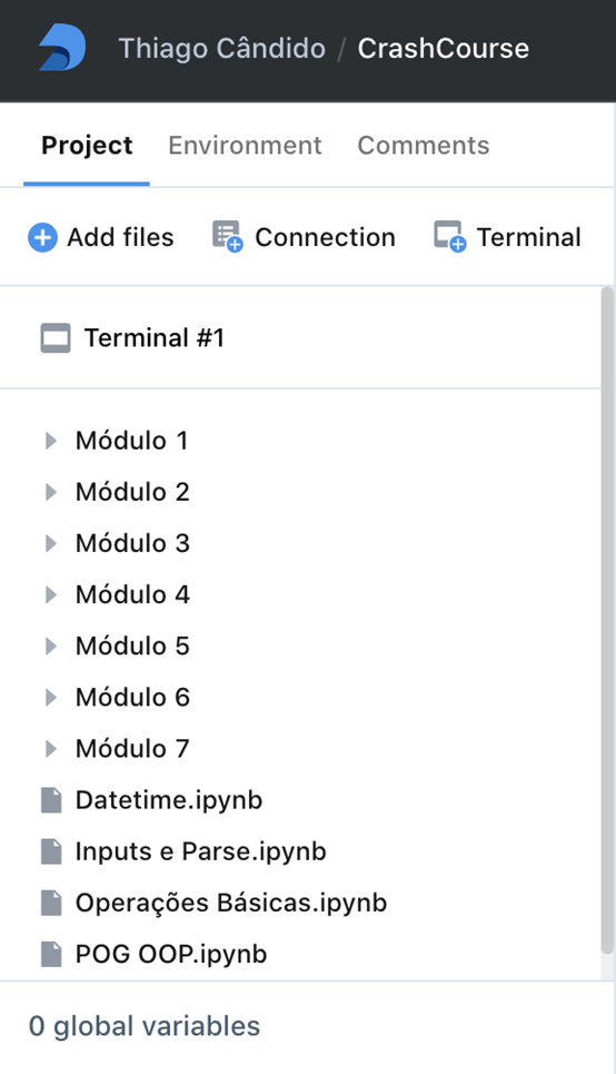Deepnote的侧导航为标签和变量查看器(以及葡萄牙语课程的相关文件迷你剧透)