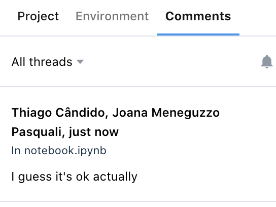 最后,还有评论选项卡。Deepnote上的交流功能非常先进,虽然这门课程主要是一个单人的项目,但有时我会请一个朋友审查它的一些notebook,这一功能没有令我失望。
