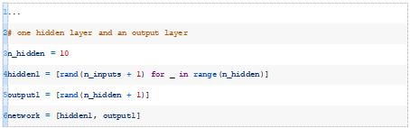我们将把我们的网络定义为一个列表。每个层将是一个节点列表,每个节点将是一个权重列表或数组。