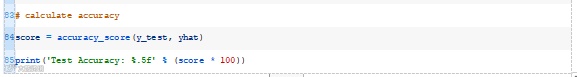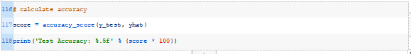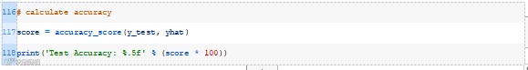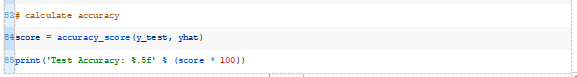 运行该示例将为训练数据集中的每个示例生成一个预测,然后打印出分类预测的准确度。