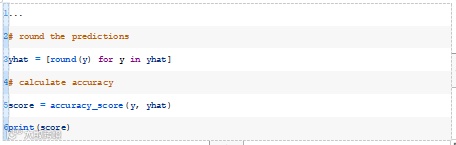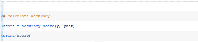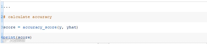 运行该示例将为训练数据集中的每个示例生成一个预测,然后打印预测的分类精度。