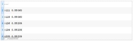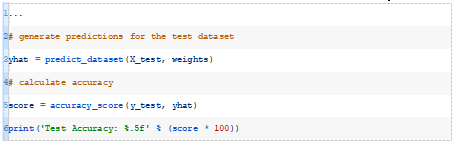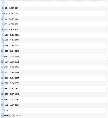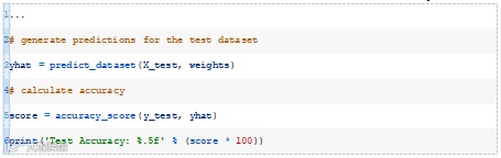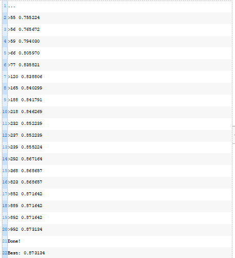在搜索的最后,报告了最佳权重集在训练数据集上的性能,并计算和报告了同一模型在测试数据集上的性能。