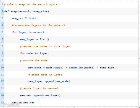 为此,我们将开发一个新功能,创建一个网络副本,并在制作副本时对网络中的每个权重进行变异。