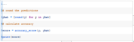 在计算分类精度之前,我们必须将预测四舍五入到分类标签0和1。