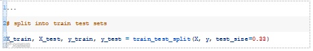 首先,我们需要将数据集分成训练集和测试集。重要的是要保留一些未用于优化模型的数据,以便在对新数据进行预测时,我们可以对模型的性能进行合理的估计。