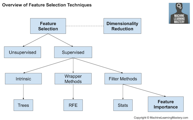 特征选择技术通常分为使用目标变量(有监督)和不使用目标变量(无监督)两类。此外,有监督的技术可以进一步分为下面几种类型:模型拟合过程中自动选择特征(本身的),选择能使模型获得最佳性能的特征(封装器)和对每个输入特征评分并选择输出特征的子集(过滤器)。