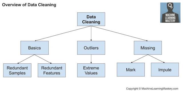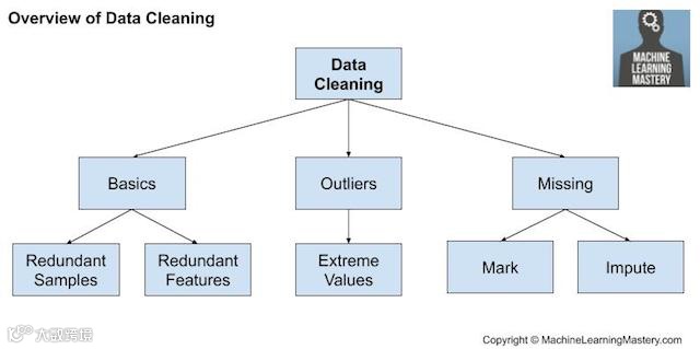 数据清洗(https://machinelearningmastery.com/basic-data-cleaning-for-machine-learning/)包括修复“杂乱无章”的数据中的系统性问题或错误。
