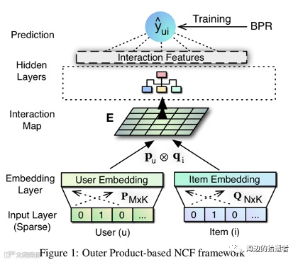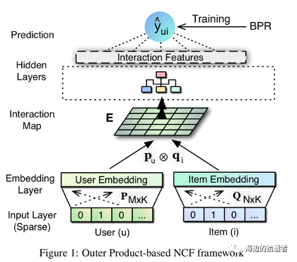 使用内积(inner product)作为用户和物品之间的交互函数,结果代表为用户对物品的偏好程度。