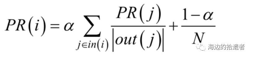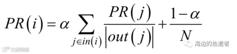 其中,PR(i)表示的是图中i节点的PageRank值,α 表示转移概率(通常取0.85),N表示的是网页的总数,in(i)表示的是指向网页i的网 页集合,out(j)表示的是网页 j指向的网页集合。