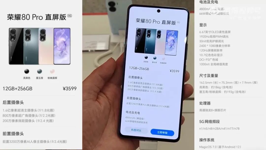 【新机】3599元 荣耀80Pro直屏版价格出炉 骁龙8+/直屏/双扬