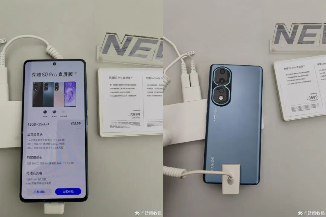 今天是2023年的第一天,之前爆料称荣耀80 Pro直屏版或在一月初直接在线下门店上架,现在已经有博主在线下门店看到了荣耀80 Pro直屏版的体验机及价格。