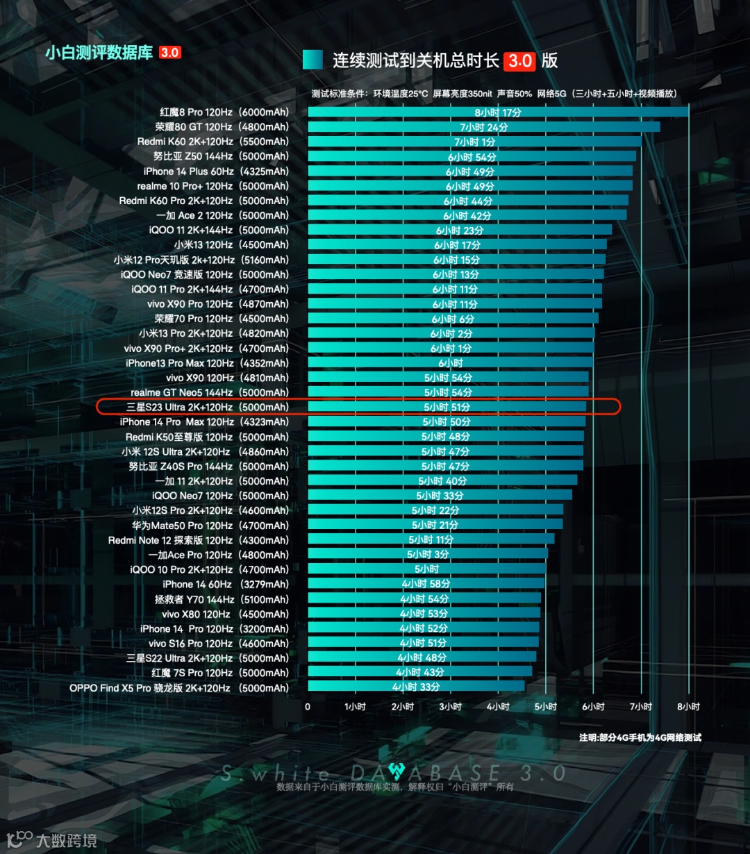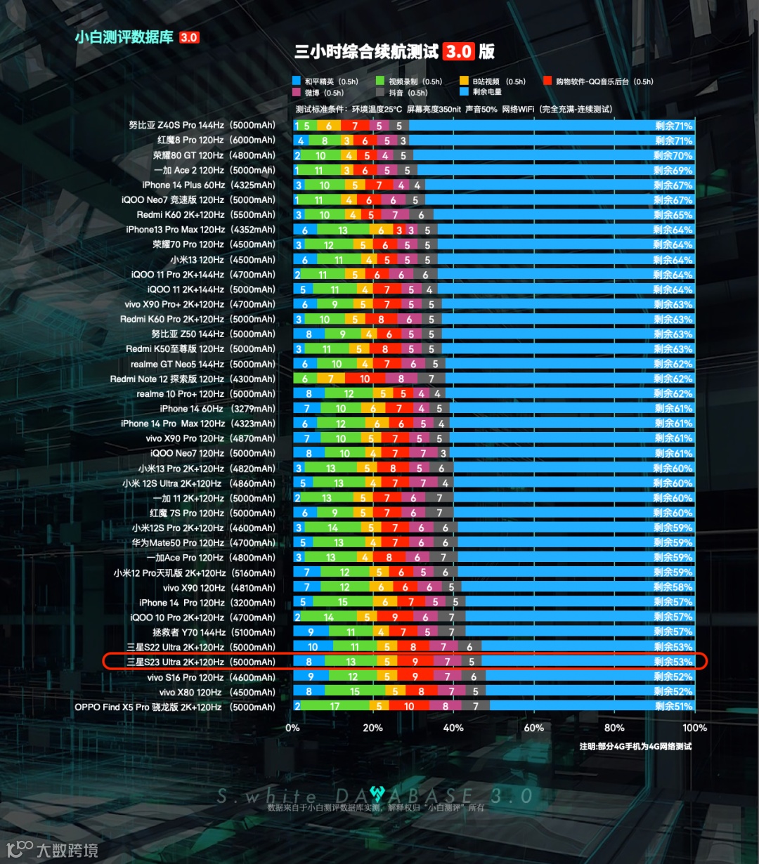 数据库3.0新的续航测试模型相比之前的变化可以看上图。更多关于小白测评数据库3.0测试模型细节可以在微信公众号后台回复「数据库测试手册」进行查阅。如需要查看数据库2.0旧版数据,在微信公众号后台回复关键词「旧版数据」即可查看。数据库3.0更新变化可戳蓝字回顾。