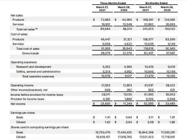 昨日苹果公司公布了2021财年第二财季业绩数据,报告显示