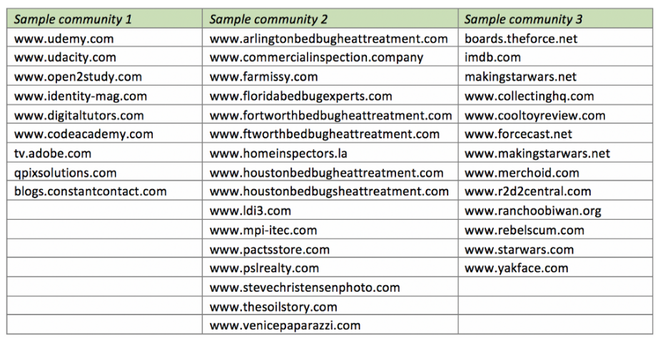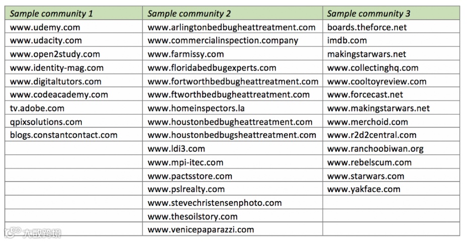 让我们简单看一些样本集群。与传统的无监督群集一样,社区可以是不同站点的混合,但是如果没有LPA,我们将错过一些有趣的话题!从左到右:
