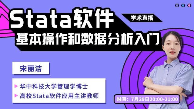 为了帮助同学们更好的学习了解Stata的使用,我们请到了华中科技大学行政管理学博士——宋丽洁,为大家讲解Stata的功能及使用。
