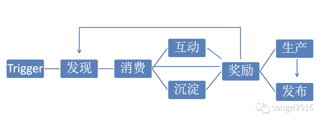 这个过程中,核心内容是 ”看- 表达-互动-成就“ ,互动与成就感驱使 ”内容的消费者“ 回到 ”看“ 这个动作上,进一步形成闭环。