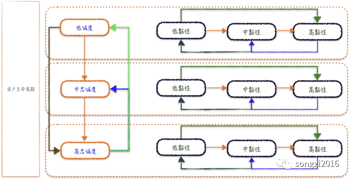 由于产品、运营对于产品的功能、运营的内容、市场的变化以及用户需求不断的迭代升级,每层用户都可能在每天发生行为上的变化,所以我们除了分析流量指标外,还是需要更多的关注在用户生命周期内的每个群体每天心智发生了哪些变化,用户对于我们产品的认可和依赖发生了怎样的变化,以及评估如何采取运营抓手可以针对性地促进哪个迁移路径。