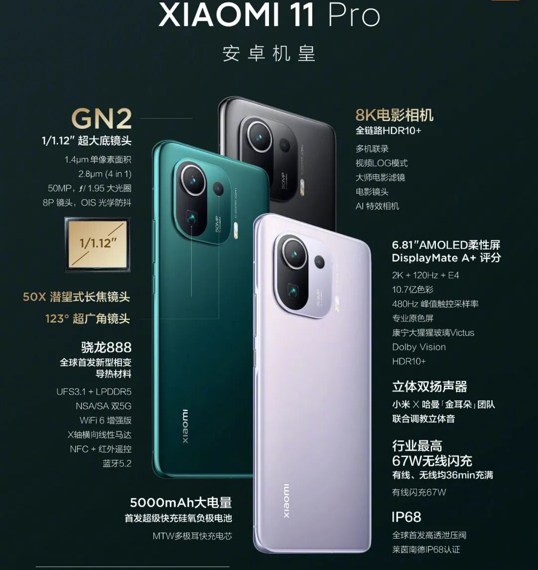 昨晚小米春季新品发布会如期举行,发布会的出厂顺序是这样的:小米11 Pro(含手机壳/充电配件)-小米AX9000路由器-小米11 Ultra-小米11青春版-小米手环6。其中小米11 Pro官方自称「安卓机皇」,而小米11 Ultra自称「安卓之光」,这篇就主要汇总下小米11 Pro。