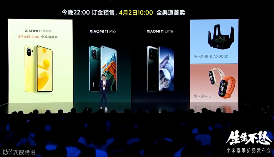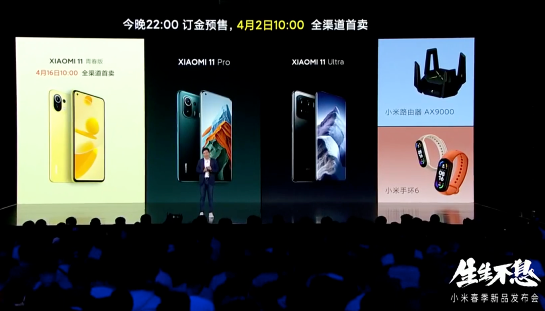 昨晚小米春季新品发布会如期举行,发布会的出厂顺序是这样的:小米11 Pro(含手机壳/充电配件)-小米AX9000路由器-小米11 Ultra-小米11青春版-小米手环6。