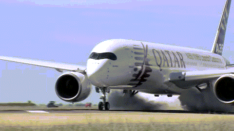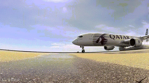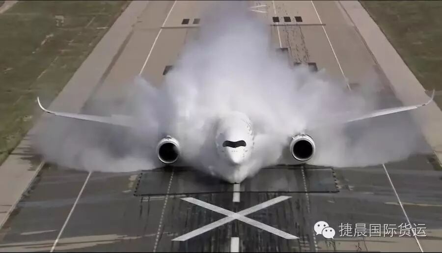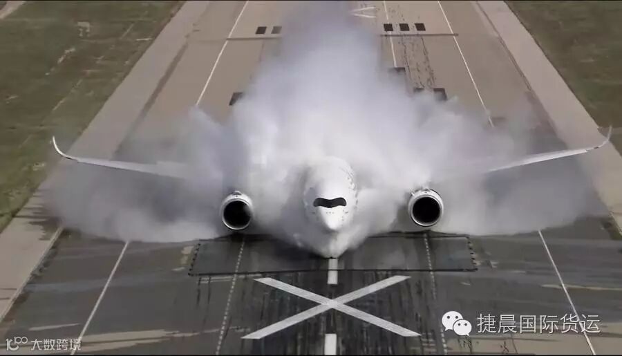 A350客机溅水试验的视频片段。每款飞机都要进行多次溅水试验时,每次以不同速率通过。