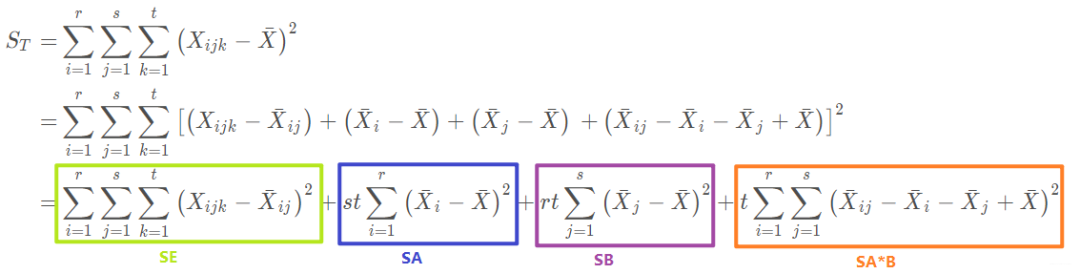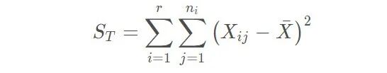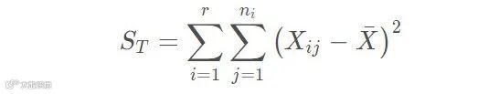 有了上面的平均值, 我们就可以得到偏差平方和了, 总偏差平方和如下:
