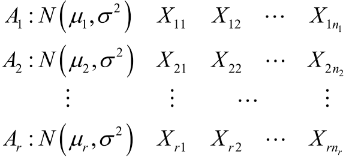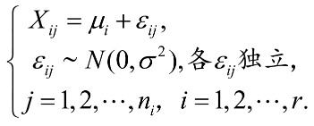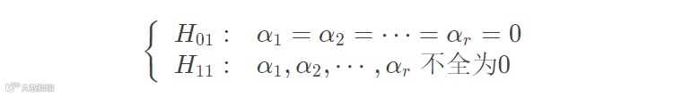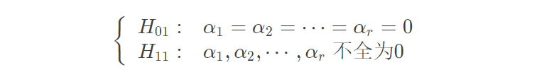 基于上面的分析, 我们就可以把方差分析也看成一个检验假设的问题, 并有了原假设和备择假设: