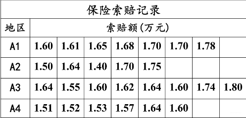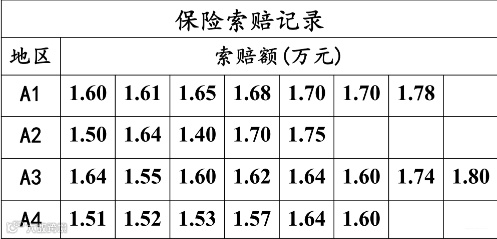 某保险公司想了解一下某险种在不同的地区是否有不同的索赔额。于是他们就搜集了四个不同地区一年的索赔额情况的记录如下表: