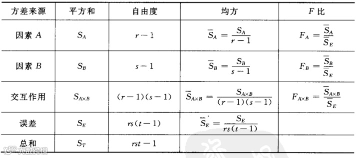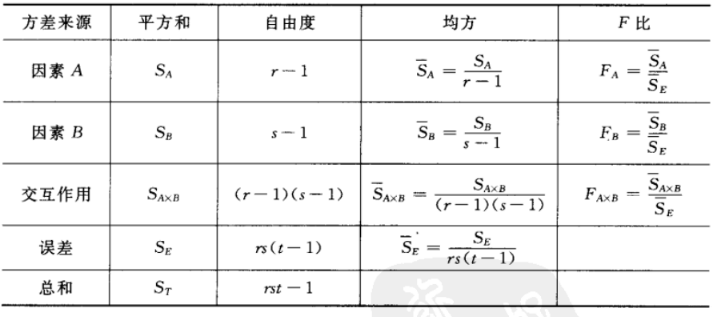 这个就是双因素试验方差分析的数学模型。对于这个模型, 我们就会有三个假设检验的问题了: