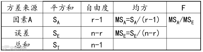 基于上面的分析,会得到一个单因素试验方差分析表: