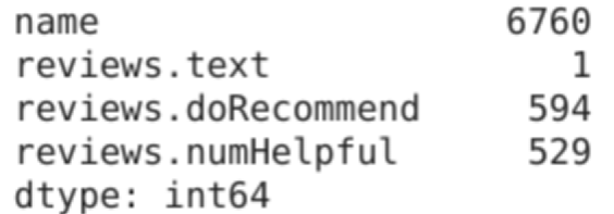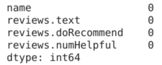 df['reviews.doRecommend']=df['reviews.doRecommend'].astype(int)df['reviews.numHelpful']=df['reviews.numHelpful'].astype(int)