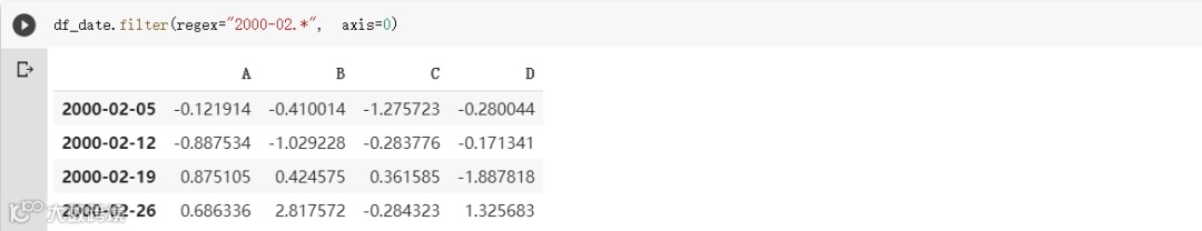 假设你想将所有索引在2000年2月内的样本取出,则可以通过filter函数达成这个目的: