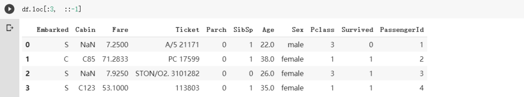 通过Python常见的[::-1]语法,你可以轻易地改变DataFrame里头所有栏位的排列顺序: